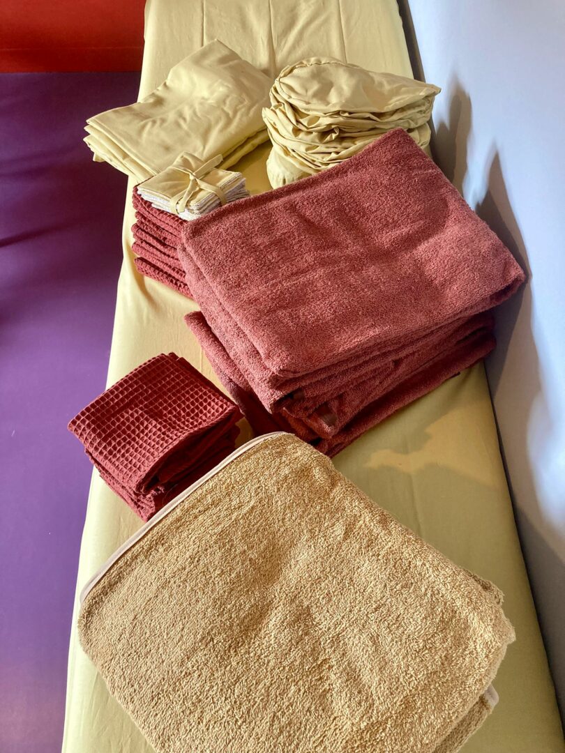 Je vous propose toute une gamme de linges adaptés à votre activité. Je confectionne les produits en fonction de votre pratique quotidienne, de vos besoins spécifiques et le tout en harmonie avec votre décoration.